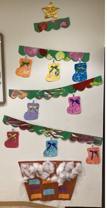 オーナメントの靴下は1歳児クラスの手作りです🧦
