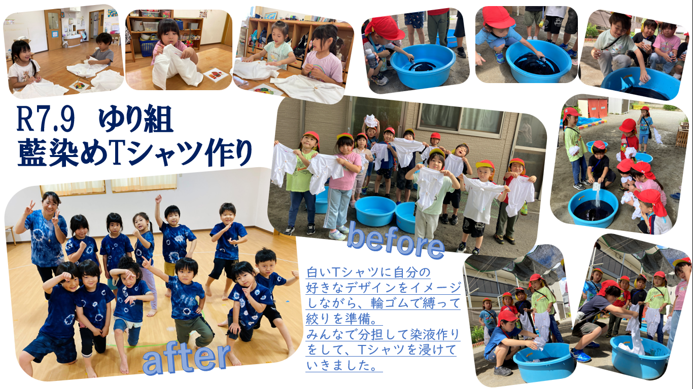 年長児たちが毎年恒例の藍染めTシャツ作りを行いました。