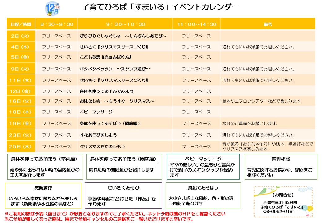 ※12月26日~1月5日まで『子育てひろば』は、お休みです。