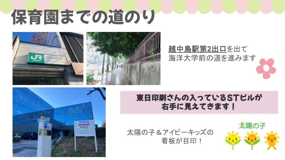 太陽の子 越中島保育園と同じ区内にあるHITOWAキッズライフが運営する保育施設です。場所、開園時間、定員、受け入れ年齢などの施設情報や、園見学・園イベントの開催状況などもご確認いただけます。