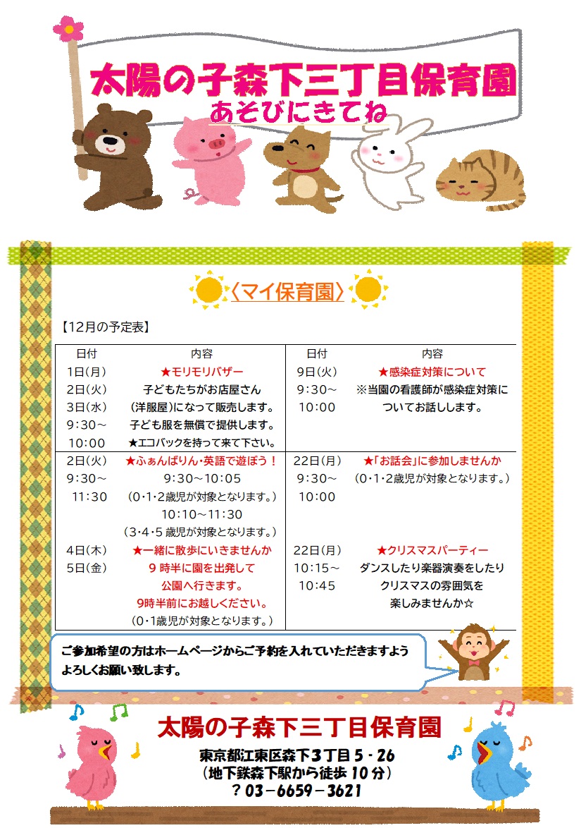 太陽の子 森下三丁目保育園の園見学/園イベントカレンダー