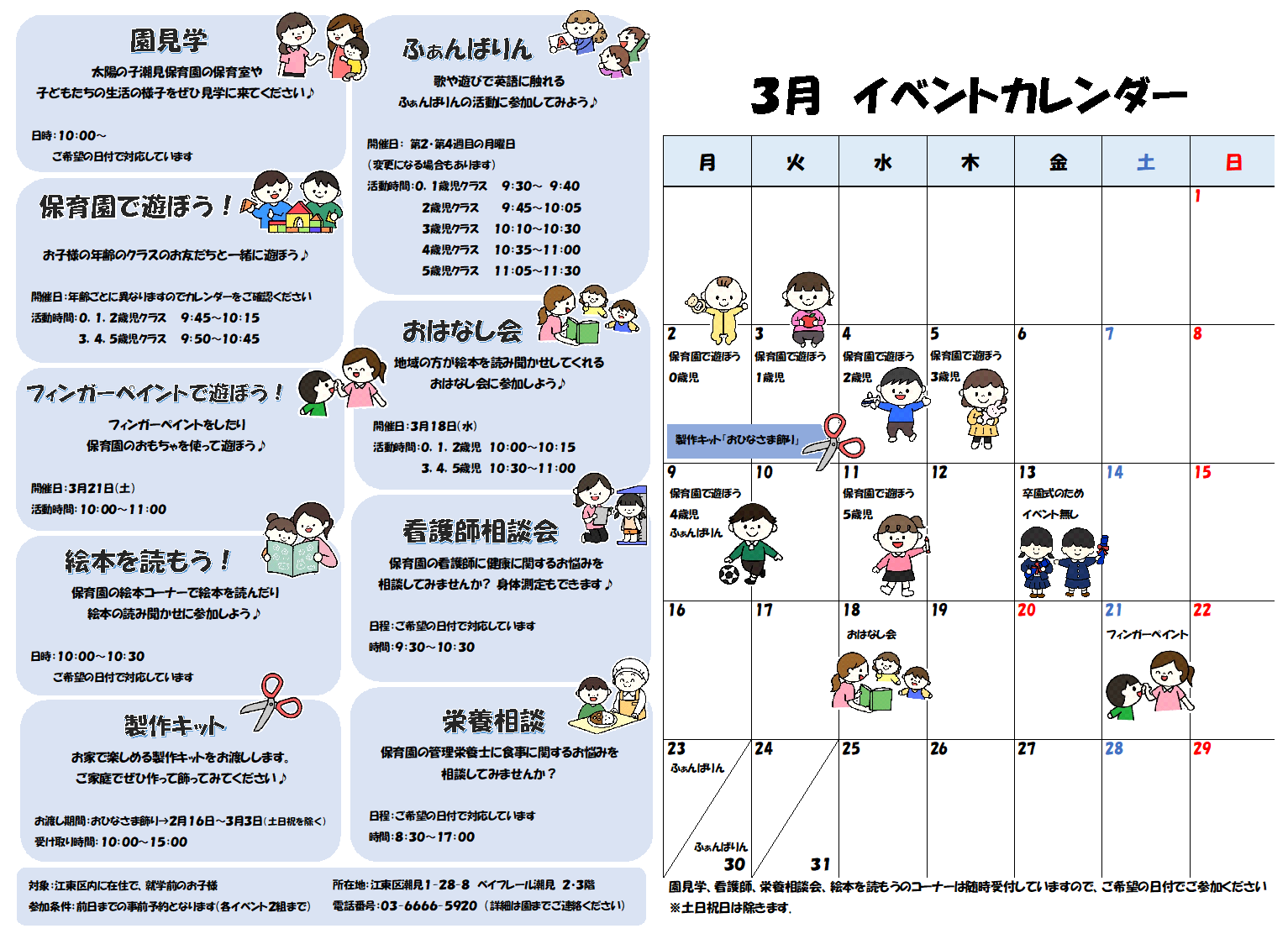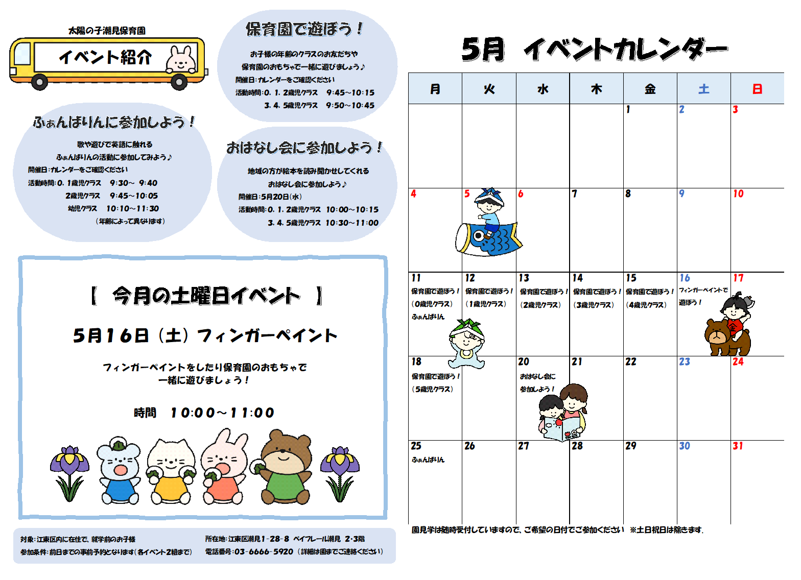 太陽の子 潮見保育園の園見学/園イベントカレンダー