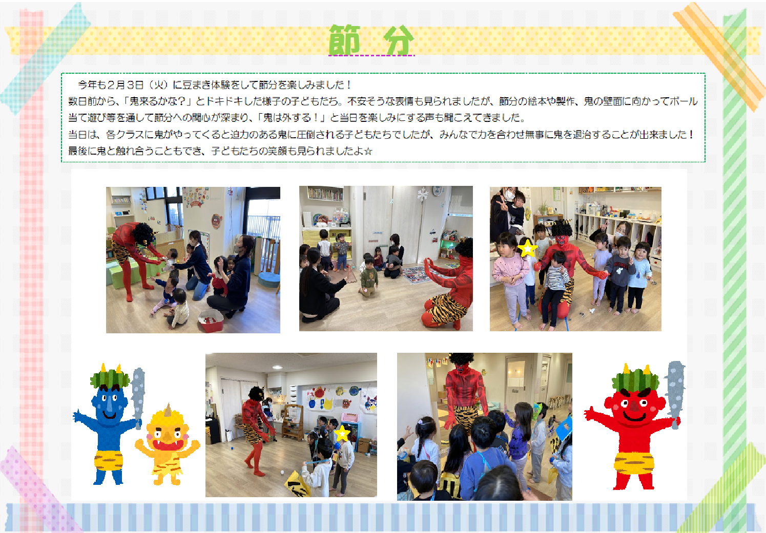 ただし、園主催の行事やイベント等で保護者の方にご協力をいただくこともあります(任意参加です)。