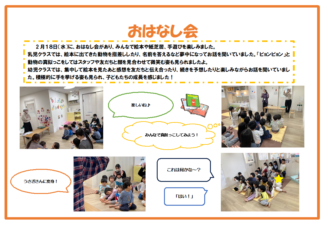 絵本や紙芝居、楽しいシアターなどが見られる”おはなし会”を毎月開催しています♪