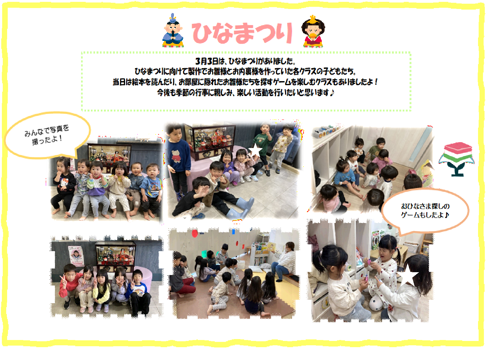 ひなまつりにちなんだゲームなどを各クラスで楽しみました!
