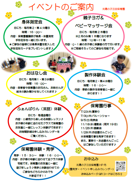 太陽の子 三田保育園の園見学/園イベントカレンダー