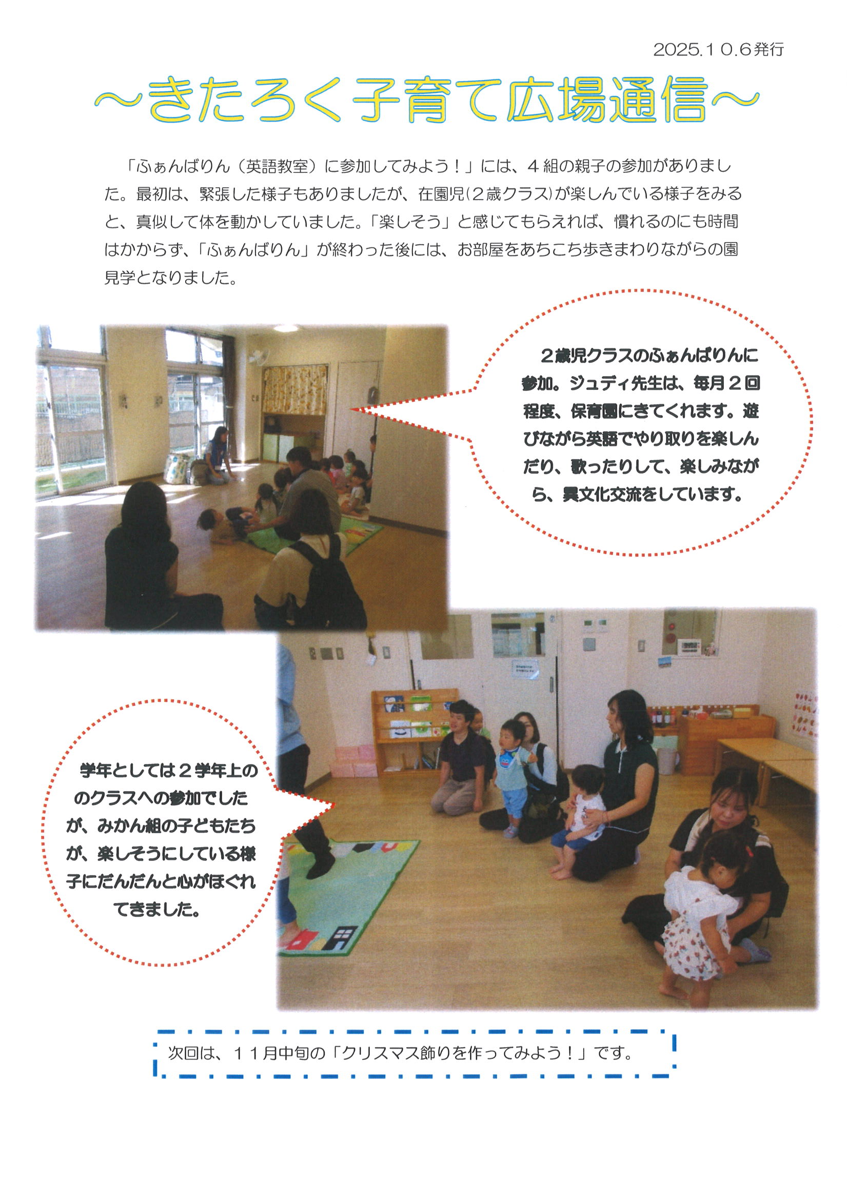 • 詳しい「きたろく子育て広場」の内容は、こちらで発表します。