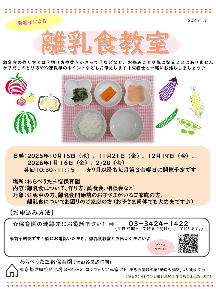 *離乳食教室の参加ご希望の方はお電話でご予約をお願いいたします。