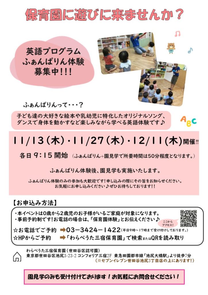 わらべうた 三宿保育園の園見学/園イベントカレンダー