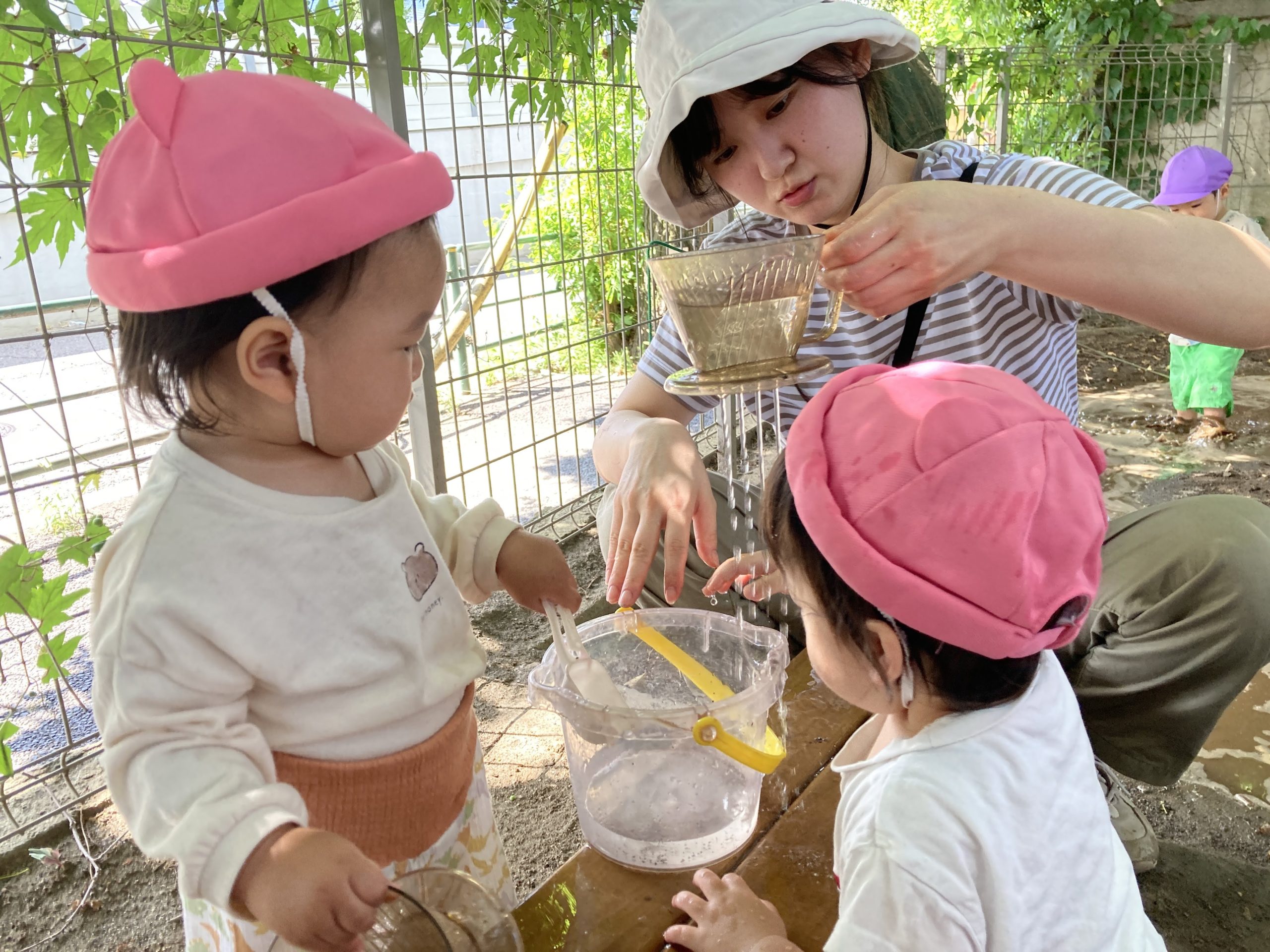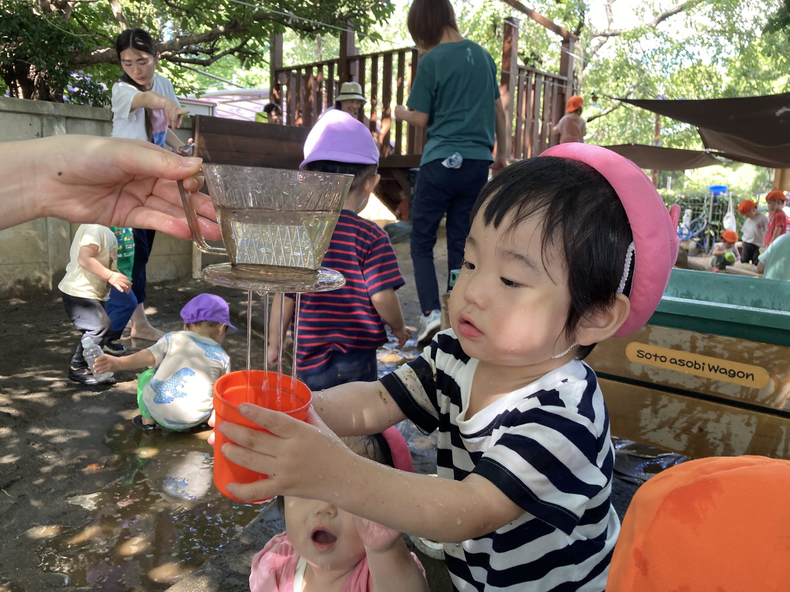 - 夏:水の感触を楽しみながら、全身を使って思う存分、好奇心を育みます。