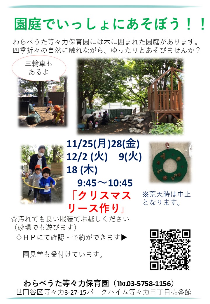 わらべうた 等々力保育園の園見学/園イベントカレンダー